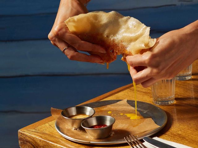 Filo pastry sheets Stuffed with mashed potatoes, pumpkin and eggplant, scrambled egg, chuma pepper and pickled lemon