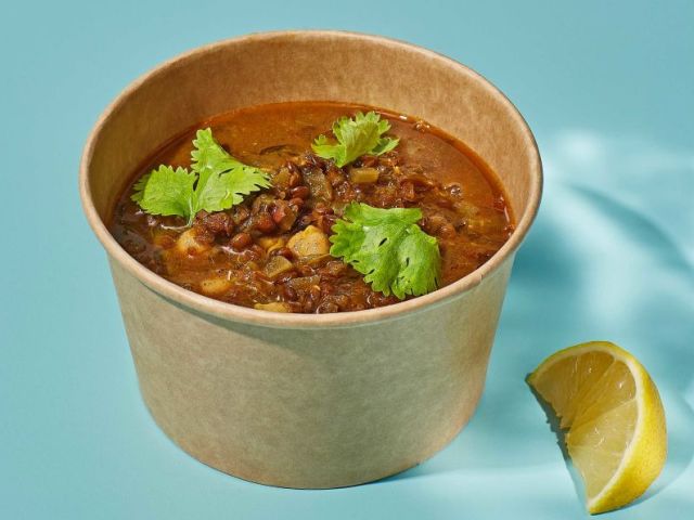 Soup Black lentils, chickpeas, tomatoes, celery, coriander and lemon Small: 32 NIS Large: 58 NIS